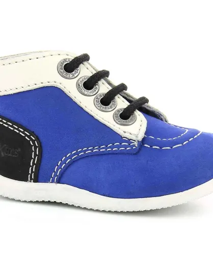Bottillons Bébé en Velours de cuir bleu/blanc/noir