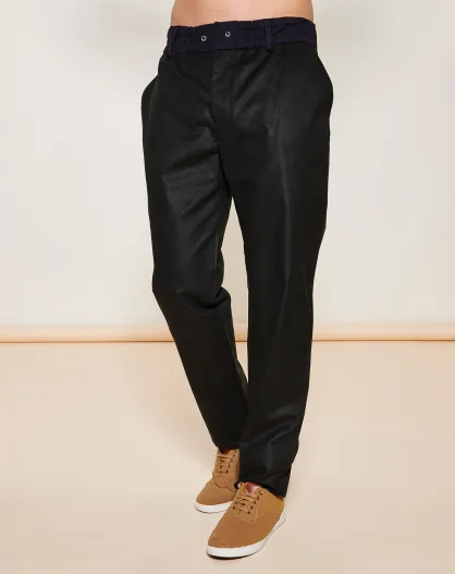Pantalon taille élastique en Velours uni vert foncé/marine
