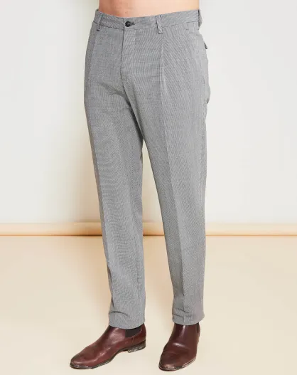 Pantalon en Laine Vierge mélangée imprimé Pied de Poule noir/blanc