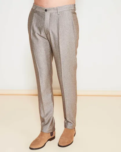 Pantalon coupe droite en Laine mélangée chiné uni taupe