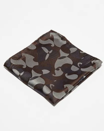Pochette de Costume 100% Soie imprimé Army marron/gris