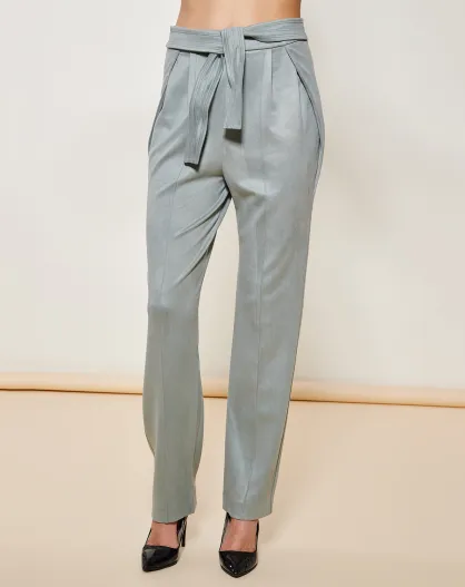 Pantalon texturé en Velours ceinture à nouer bleu/gris