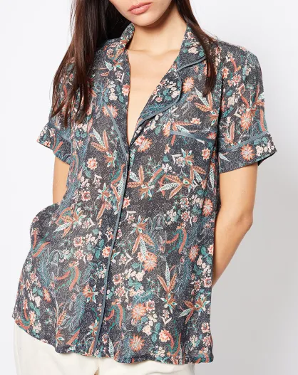 Chemise Noam fleurie noire