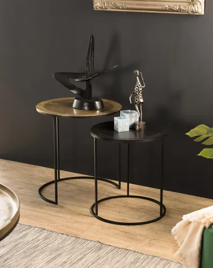 2 Tables d'appoint gigognes rondes Jonas doré/noir - D.48.5xH.52 cm