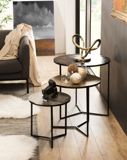 3 Tables gigognes rondes Jonas noir/doré/argenté - D.60xH.59.5 cm