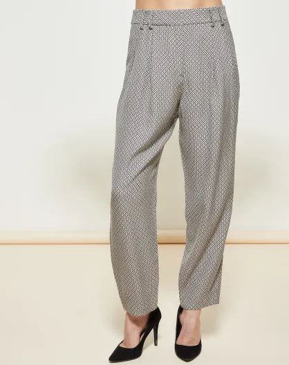 Pantalon fluide flare imprimé fantaisie gris foncé/beige