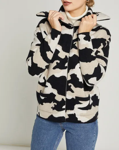 Veste bimatière en Laine & Cachemire Noa noir/blanc
