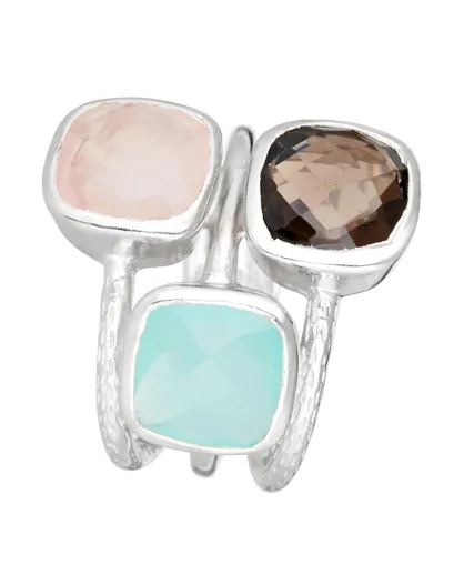 Bague Elsa Aqua Calci & Quartz en laiton argenté