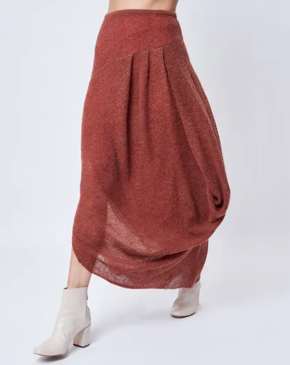 Jupe en Mohair, Alpaga & Laine mélangés asymétrique rouille