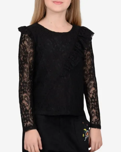 Blouse en dentelle & volants noire
