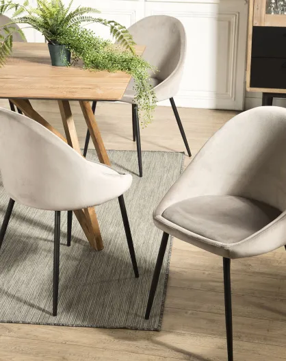 2 Chaises Augustin en Velours chamois - 53x51x78 cm