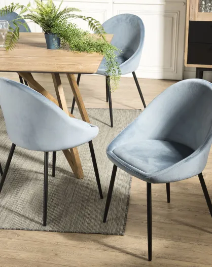 2 Chaises Augustin en Velours bleues - 53x51x78 cm