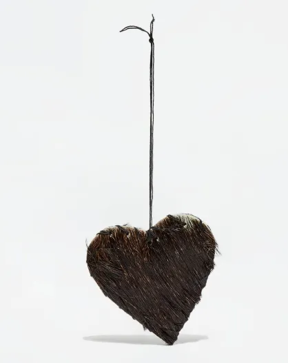 Pendeloque coeur en Peau de Chèvre marron - 10x11 cm