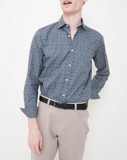 Chemise Slim Sammy imprimé ours bleu/écru