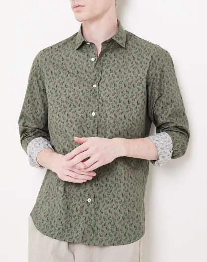 Chemise Slim Sammy imprimé cerf kaki/marron