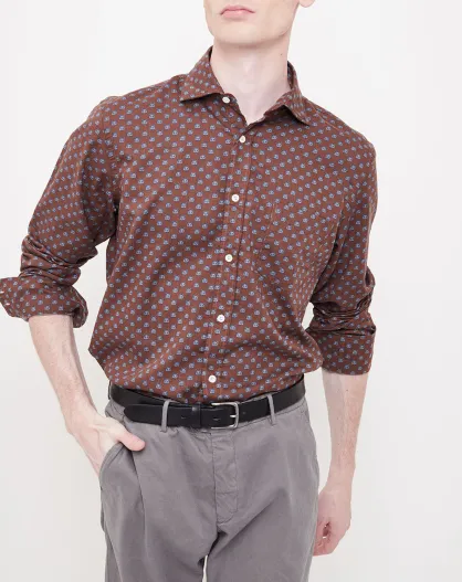 Chemise Regular en Flanelle de Coton Paul imprimé fox marron