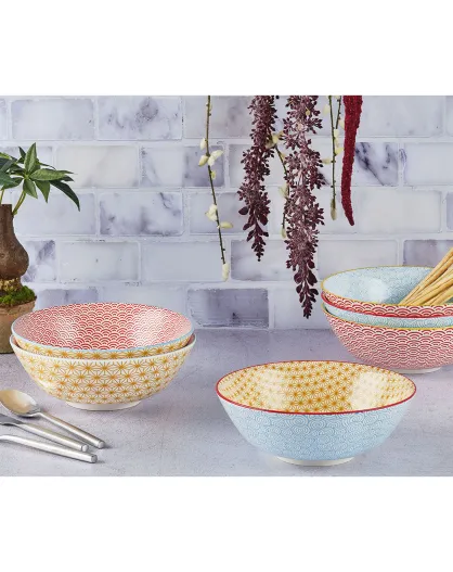 6 Bols Pattern Color bleu clair/rouge/jaune - D.21 cm