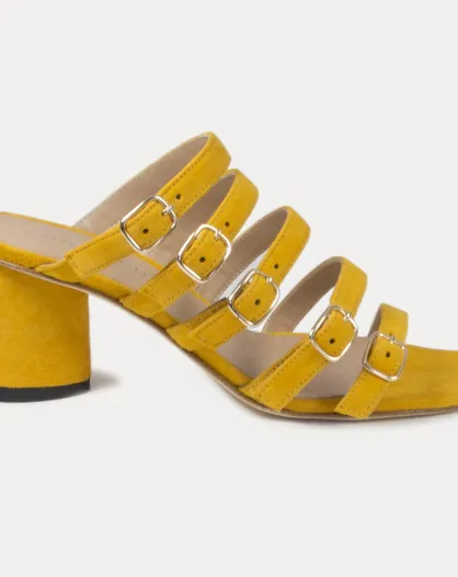 Sandales en Velours de Cuir Venetia jaunes - Talon 6 cm