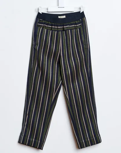 Pantalon droit Laroux à rayures vert/bleu marine/beige