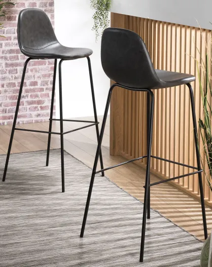2 Tabourets de bar en métal style Industriel John noirs - 45x46x103 cm