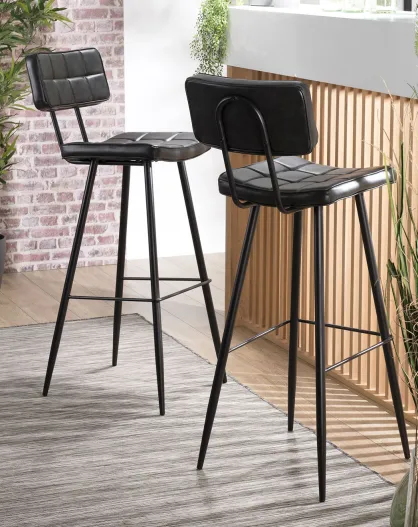 2 Tabourets de bar en métal style Industriel James noirs - 42x55x108 cm