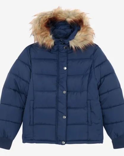 Doudoune à capuche fausse fourrure Sana bleu marine