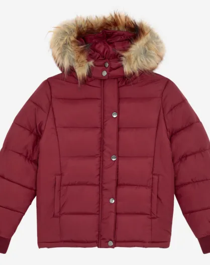 Doudoune à capuche fausse fourrure Sana bordeaux