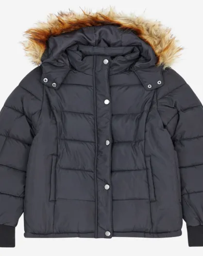 Doudoune à capuche fausse fourrure Sana noire