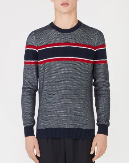 Pull 100% Laine Mérinos Col Ras du Cou Jacquard bleu marine