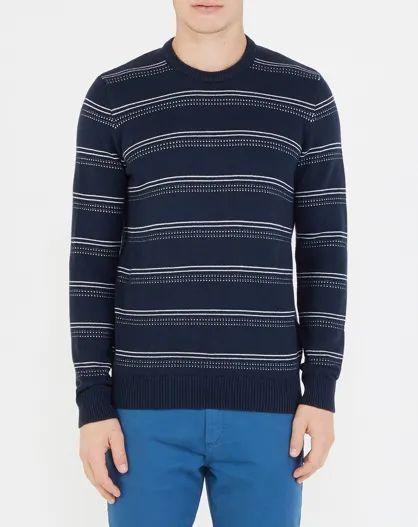 Pullt 100% Laine Mérinos à Rayures Rn Nouveau bleu marine