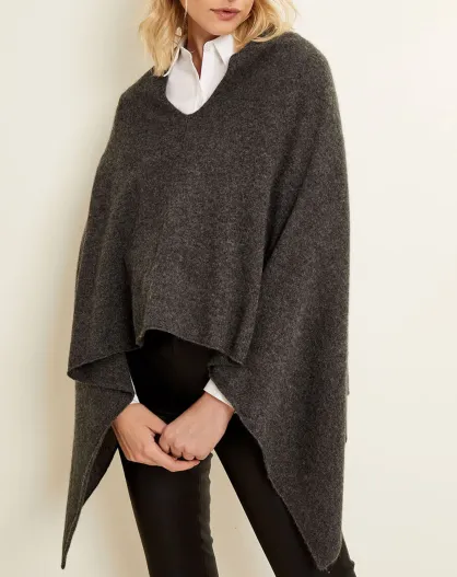 Poncho 100% Cachemire 4 fils col V gris chiné foncé