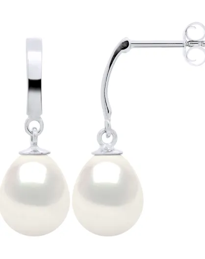 Boucles d'oreilles Poire Argent & Perles d'Eau Douce blanches