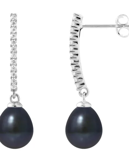 Boucles d'oreilles Argent Zircons Perles d'Eau Douce noires