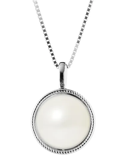 Pendentif & chaîne Or Blanc Perle d'Eau Douce blanc naturel
