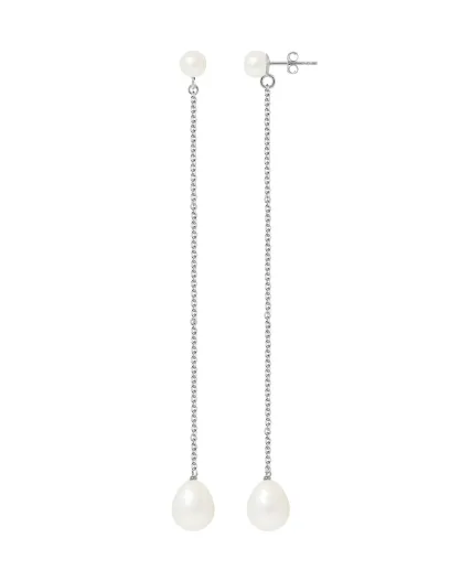 Boucles d'oreilles en Or Blanc Double Perles d'Eau Douce Bouton blanc naturel