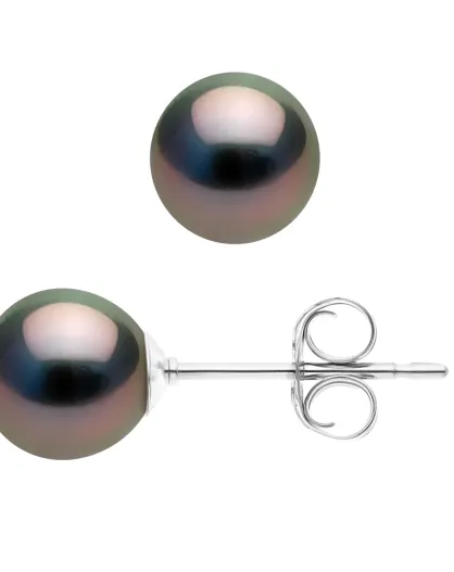 Boucles d'oreilles en Or Blanc Perles de Tahiti semi Rondes noires