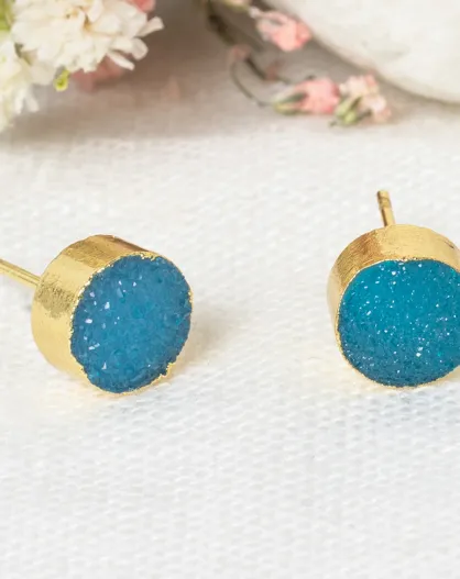 Boucle d'oreilles Noémie Drusy Bleu en Laiton doré