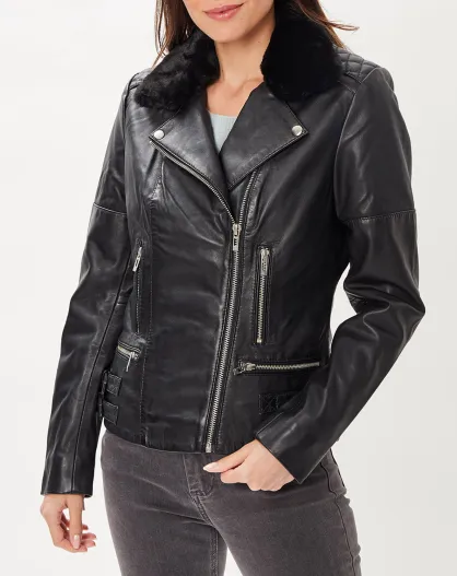 Veste en Cuir Melinda noire
