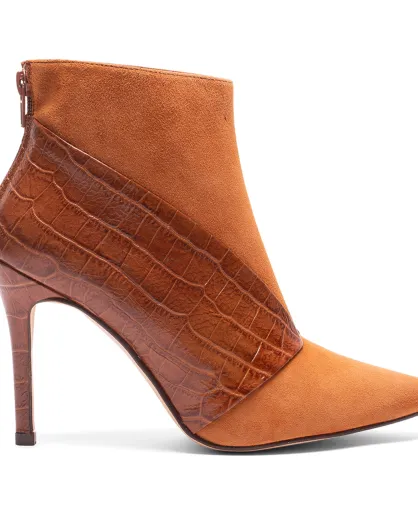 Bottines en Cuir et Velours de Cuir Flavia cognac - Talon 8 cm