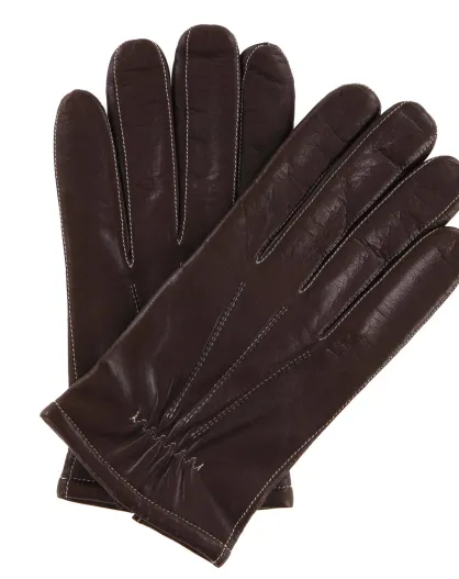 Gants en Cuir d'Agneau doublure textile marron/écru