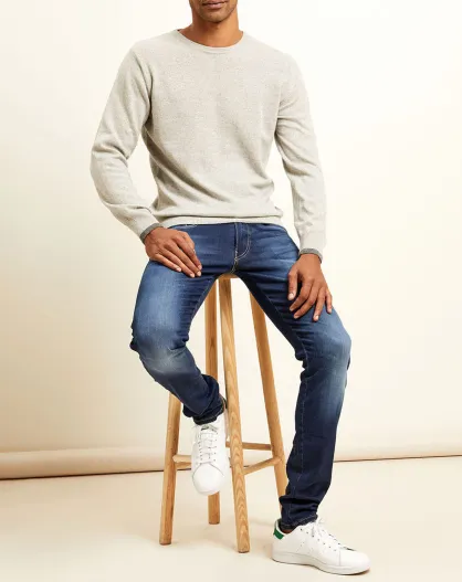 Pull 100% Cachemire col rond gris clair/gris foncé