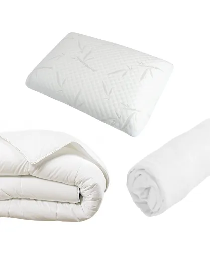 Pack 2 Oreillers + Protège-Matelas + Couette blanc - 90x190 cm