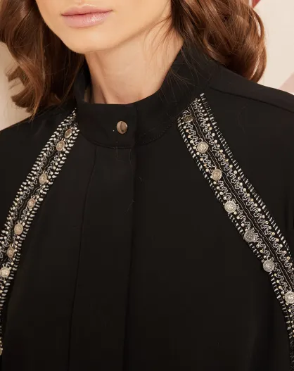 Chemise ornée de bijoux noire