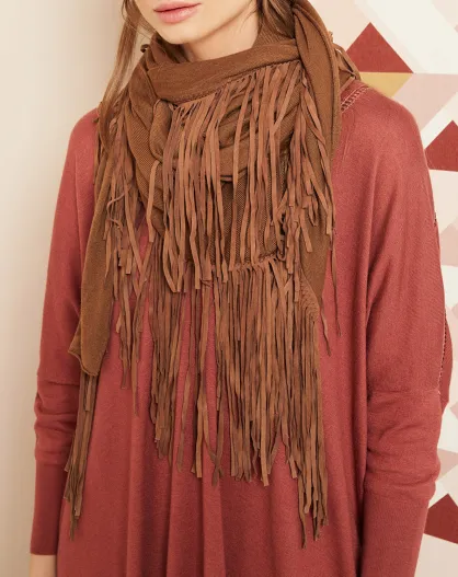 Écharpe avec franges en Cuir camel - 220x92 cm