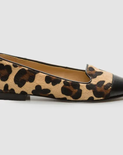 Slippers en Cuir façon Poulain Alinia léopard noir/beige