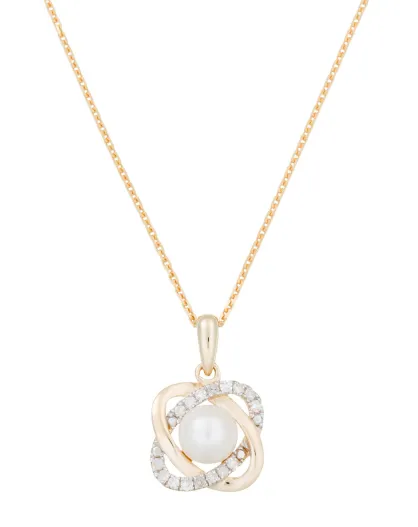 Pendentif Perles croisées & Diamants 0.132 ct or jaune