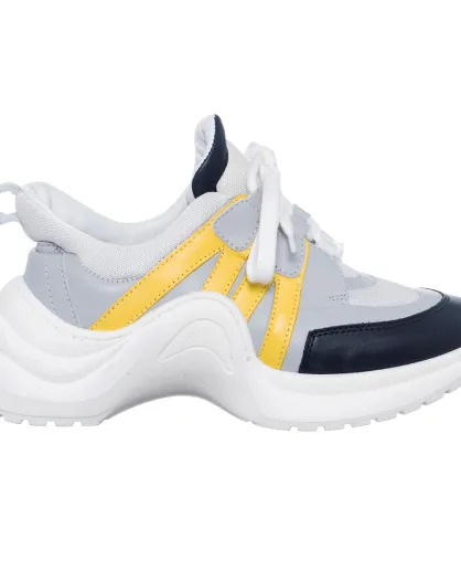 Sneakers en Cuir Bianca blanc/gris/noir/jaune - Talon 5 cm