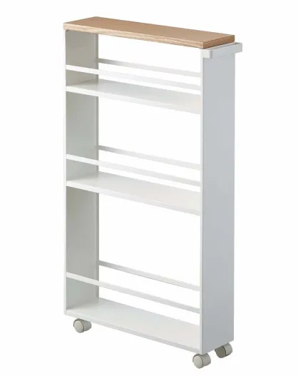 Étagère de rangement roulante blanc/bois - 13x47.5x80.5 cm