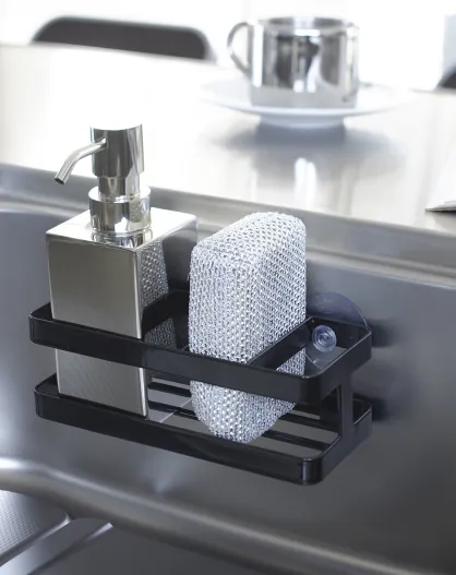 Porte-savon & éponge à ventouse noir - 18x8x6 cm