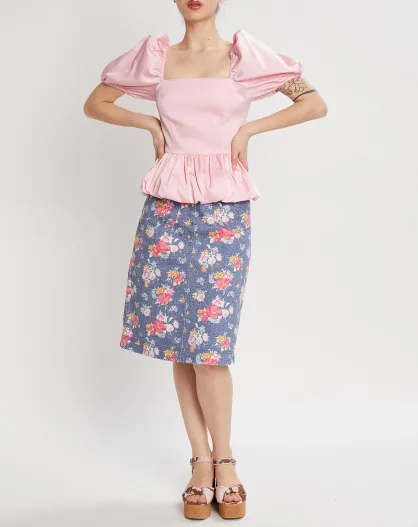 Jupe Floral Denim fleurie bleu/rose